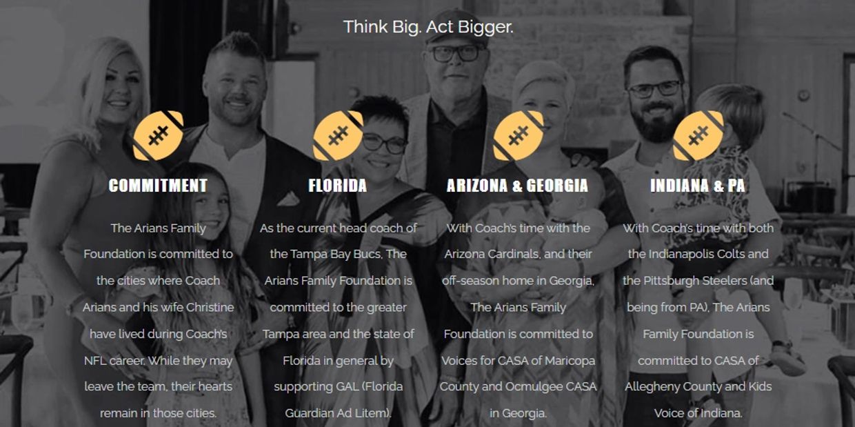 As the former head coach of the Tampa Bay Bucs, The Arians Family Foundation is committed to the greater Tampa Bay area and the state of Florida by supporting GAL (Florida Guardian Ad Litem). For more information, visit www.guardianadlitem.org/